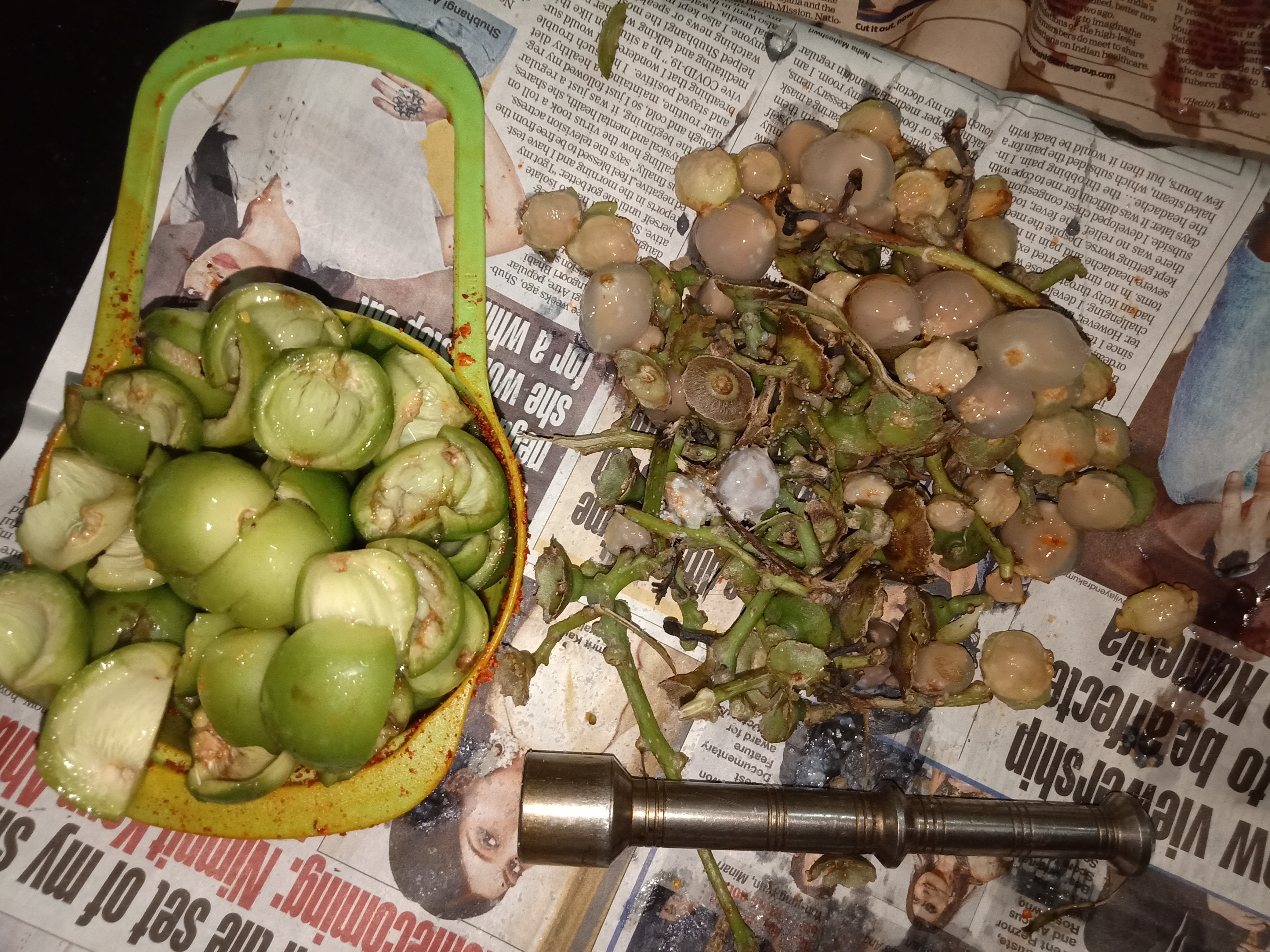 - Gently smash gunda and remove seeds .Cut each gunda into 4 pieces.