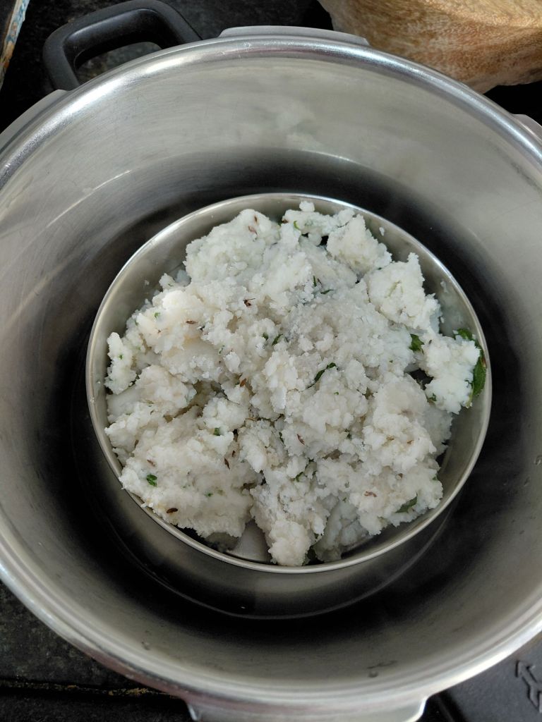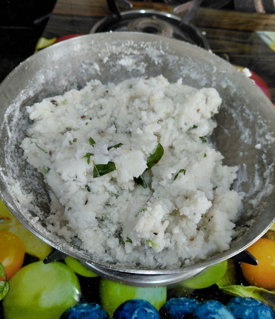 - You will get nice shape of bowl. Pour sesame oil over it, sprinkle athana no sambhar and garnish with coriander leaves.