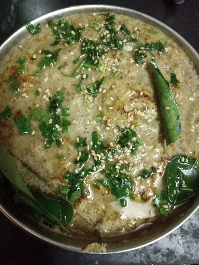 - Add Sesame seeds, Curry leaves and Coriander leaves .