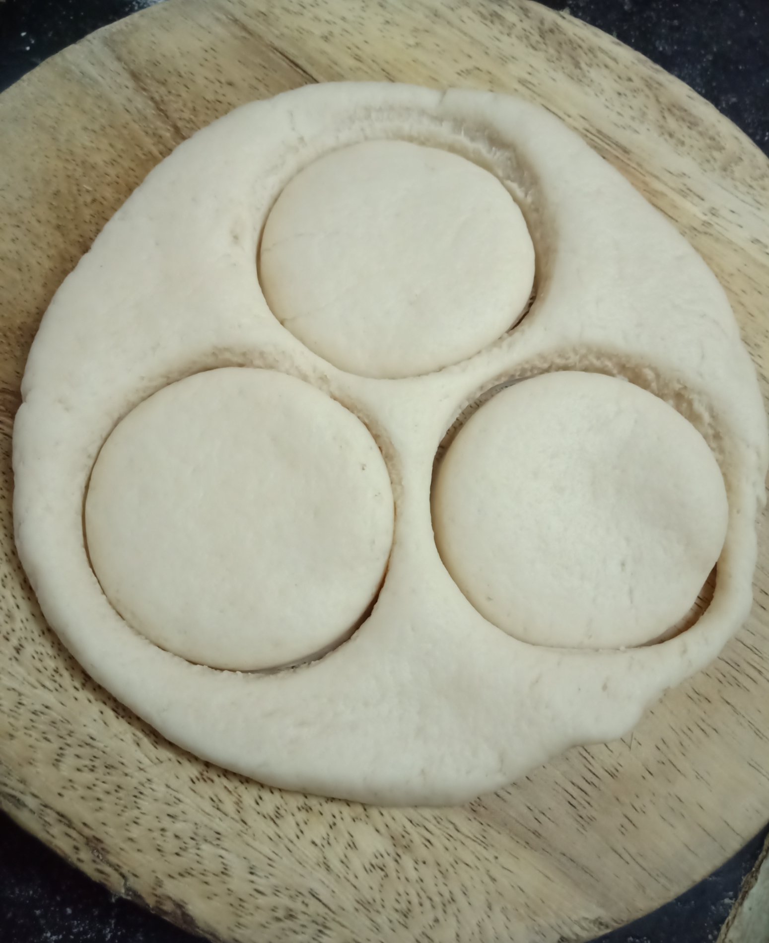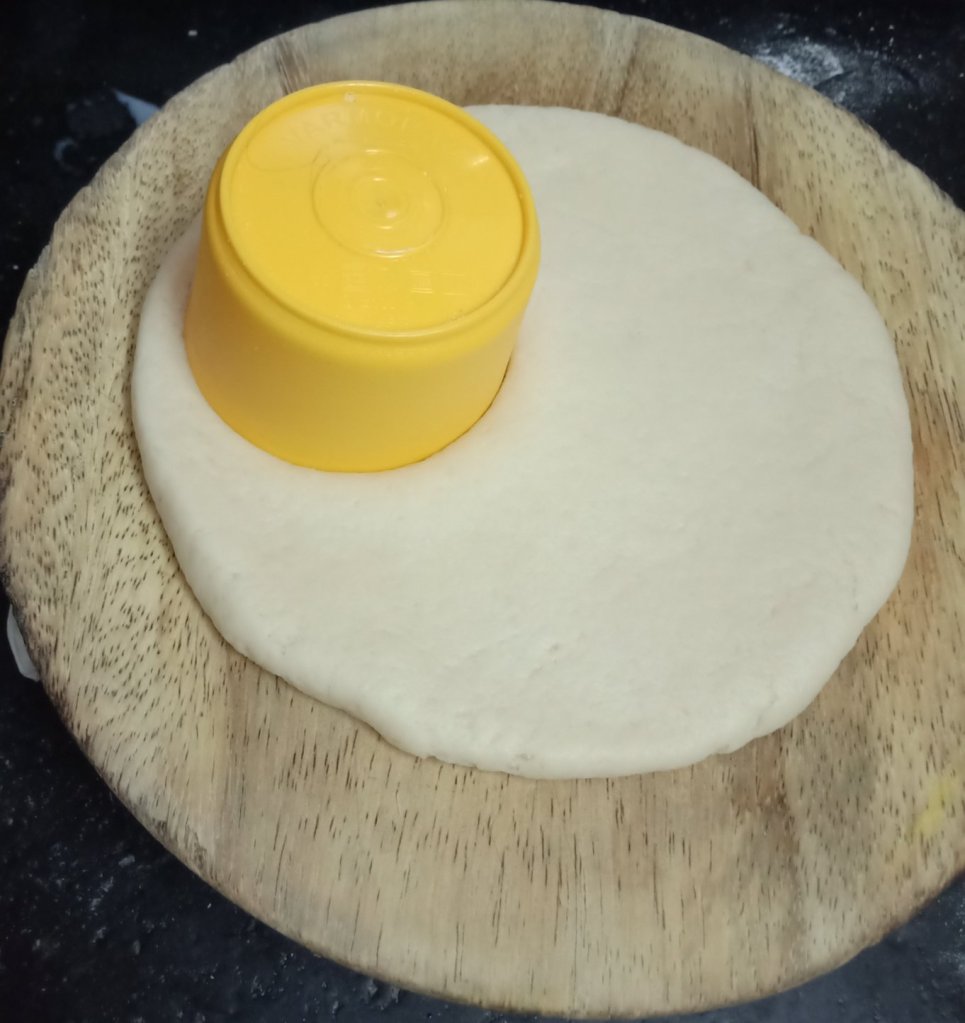 4. Spread dry flour on rolling board and make ½ centimeter thick round circle with the help of rolling pin.