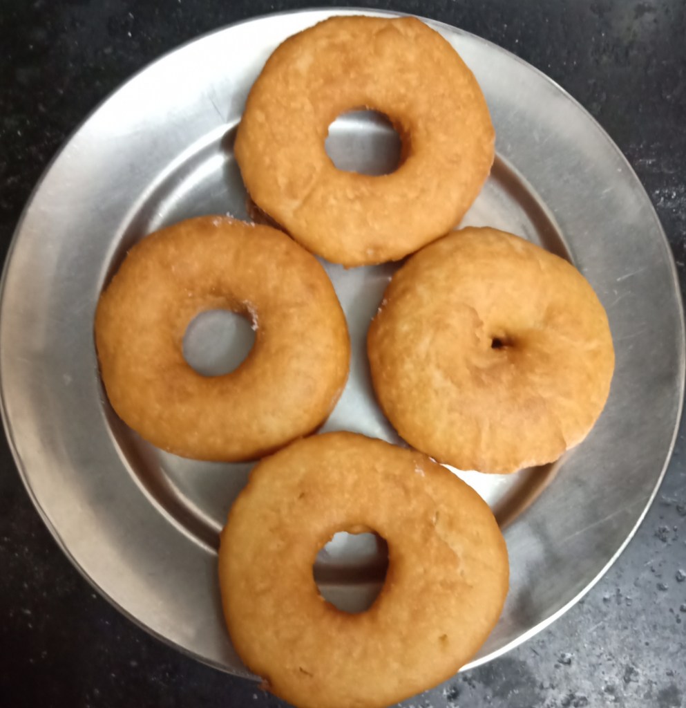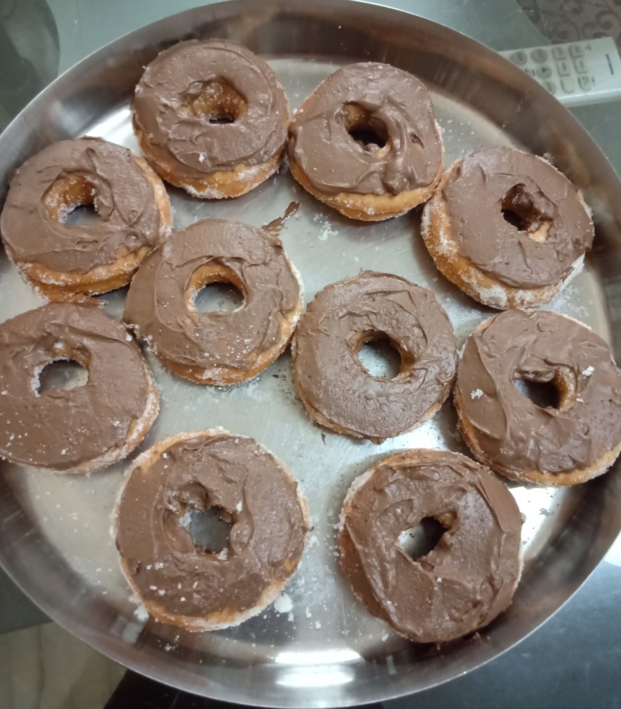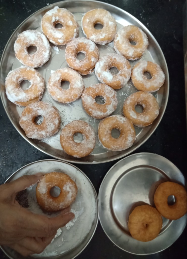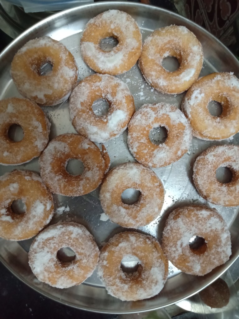 11. Deep fry all doughnuts till golden brown on medium flame.