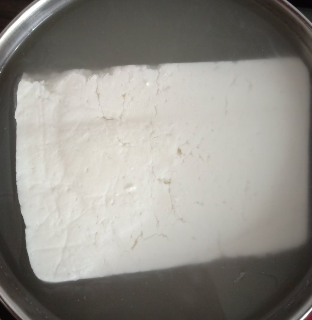 - Cut malai paneer block into 1 inch cubes and keep aside.