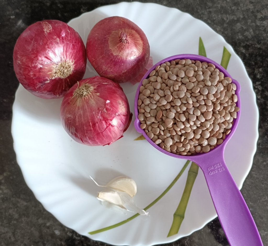 4. Drain extra water from the cooked Masoor pan and keep aside.
