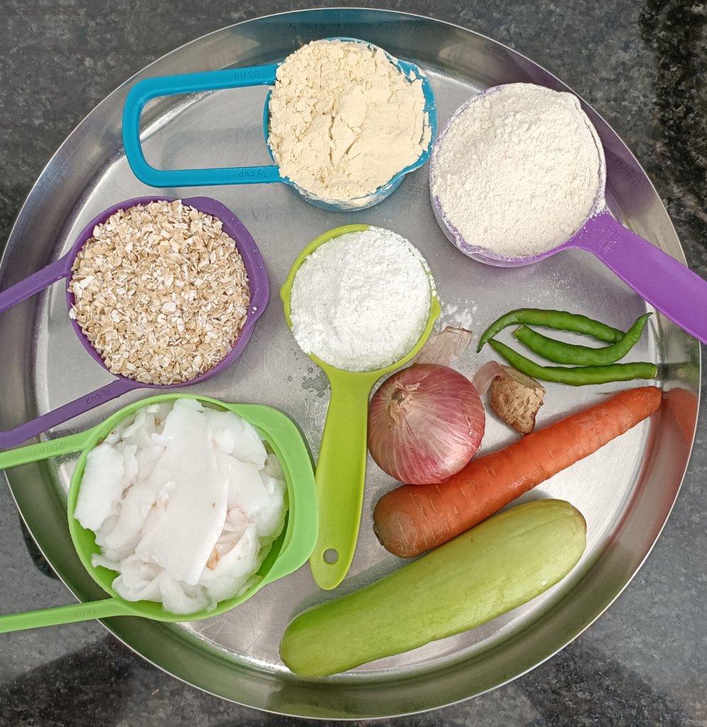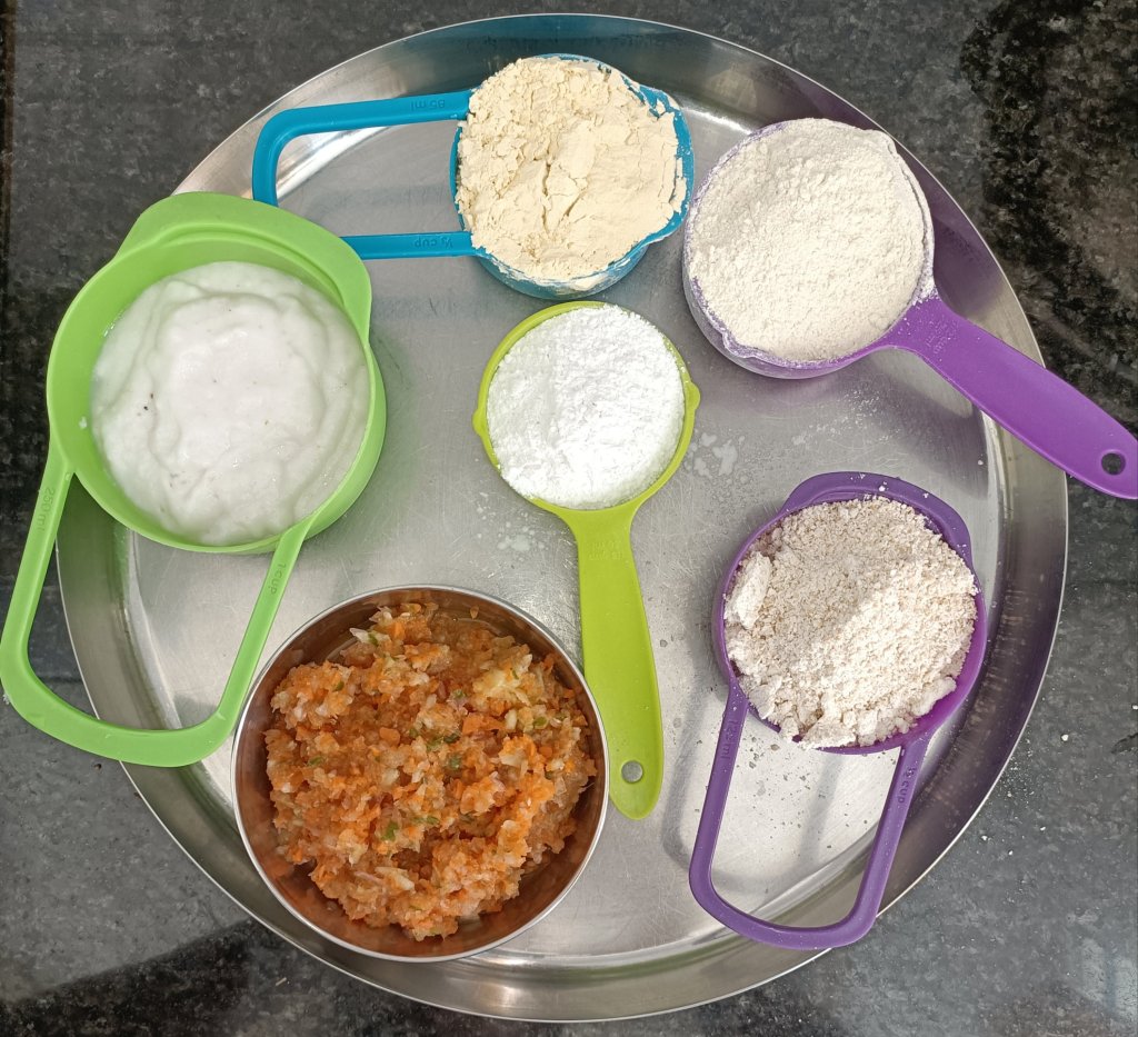 - In a mixing jar mix chopped vegetables and batter and adjust the consistency by adding water( see video).