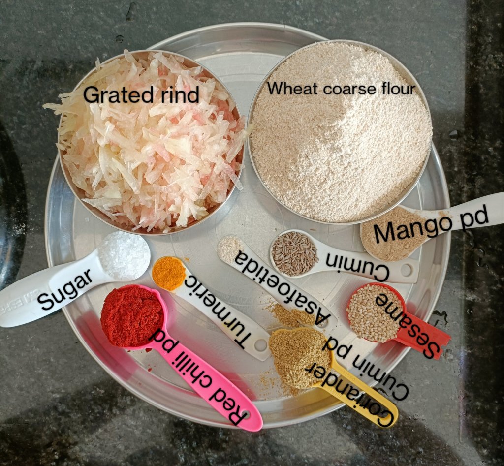 - 1 ½ cup Grated Water melon rind.