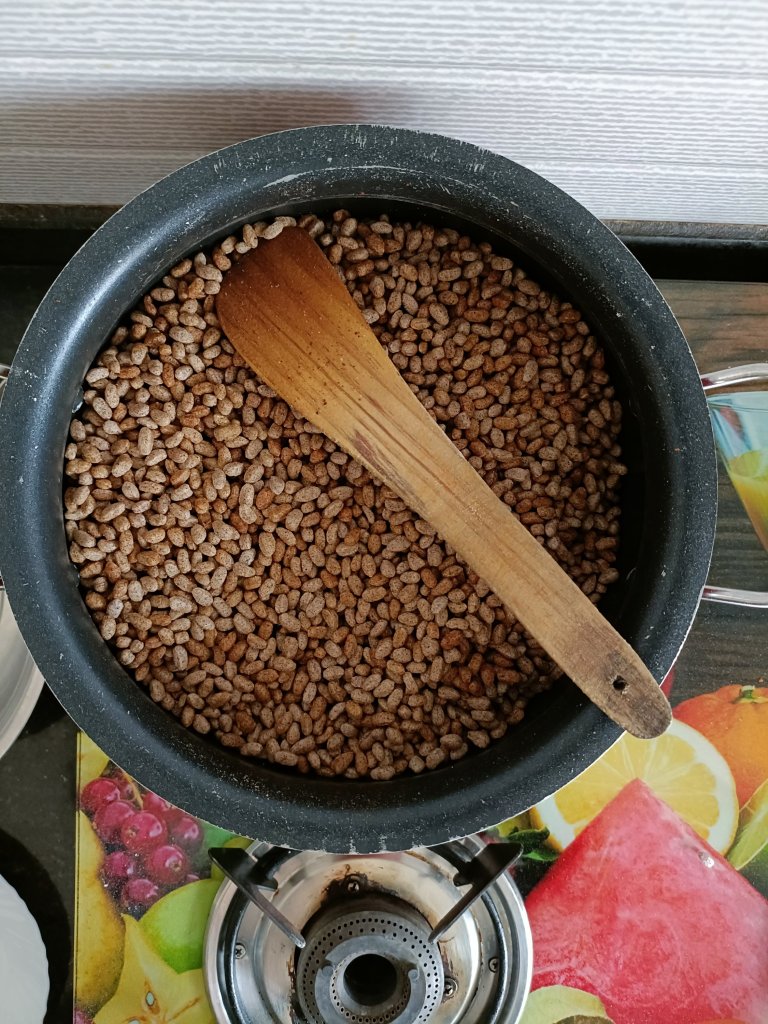 - Check a single piece of kurmura by pressing in between finger and thumb. If it breaks and forms powder it means kurmura are properly roasted. Keep aside.