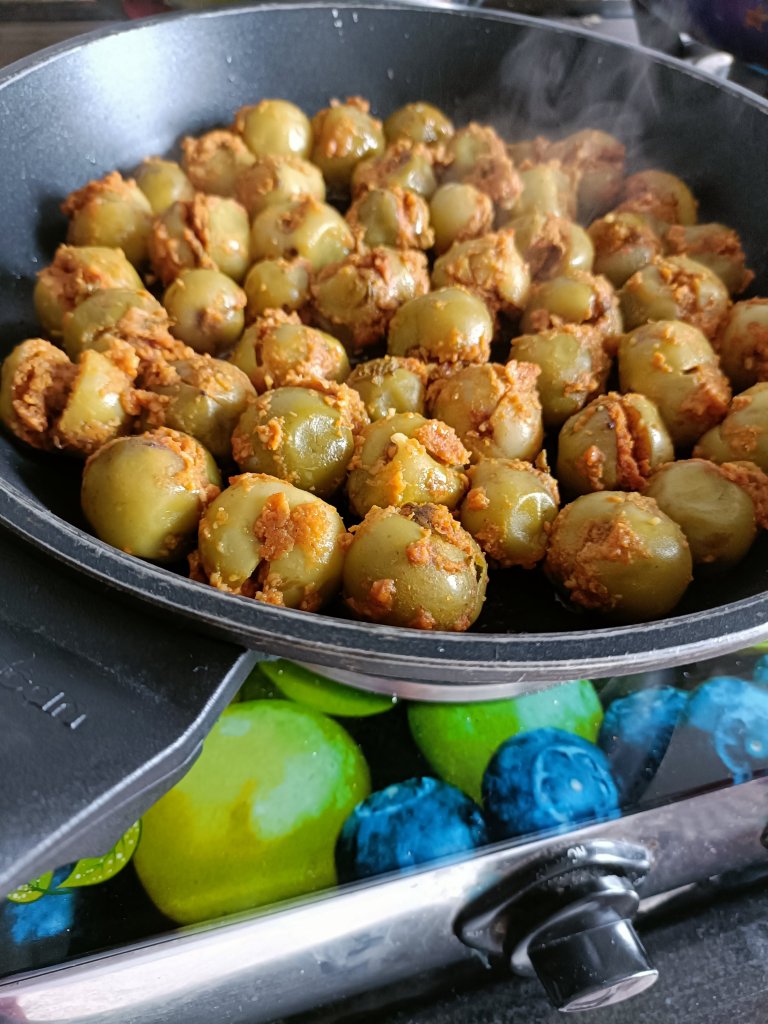 - Heat oil in a nonstick pan and saute all stuff gum berries on a slow flame for 5-7 minutes.