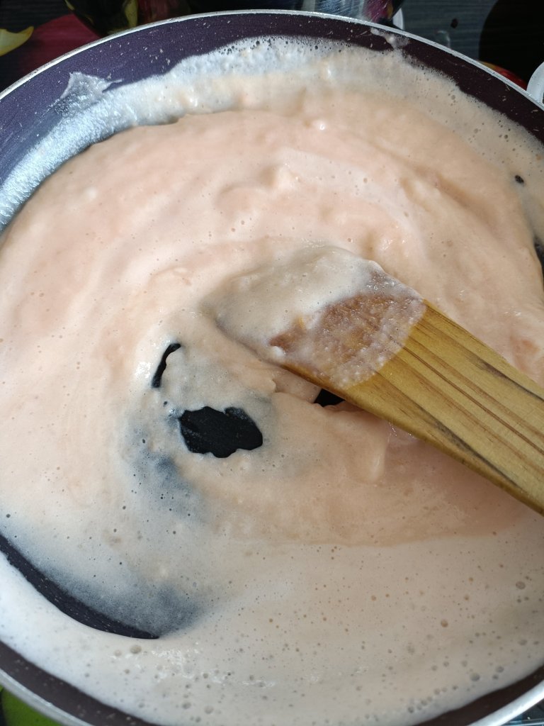 - Heat a nonstick pan and pour red lentil batter in the pan and cook on a slow flame till you get the required consistency ( see video).