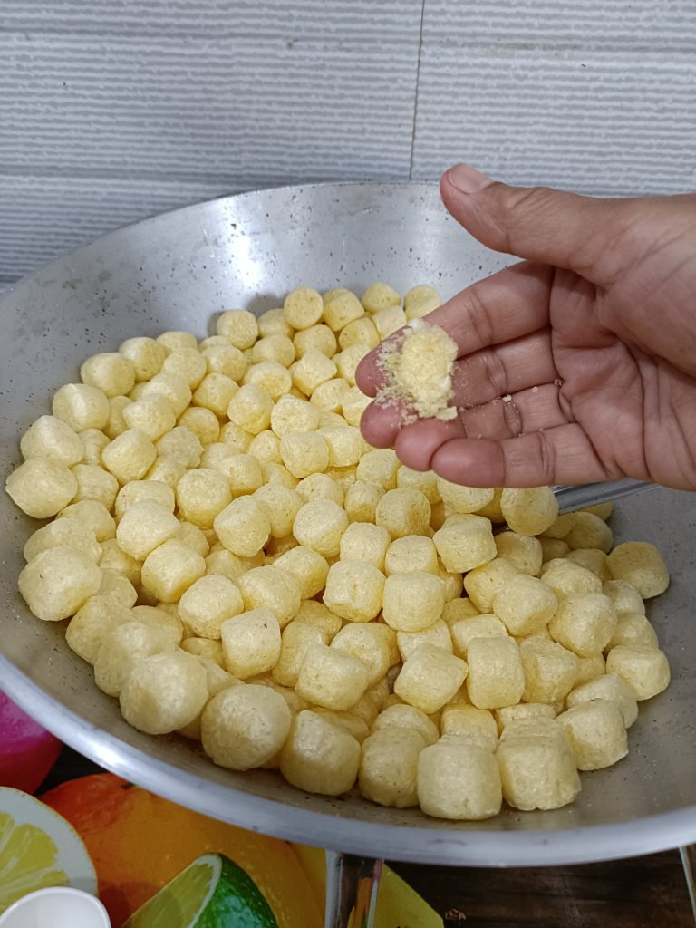 1. Dry roast puffs on slow flame. Keep aside.