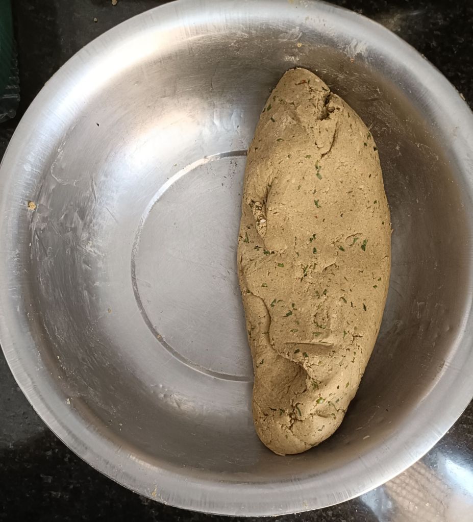 - Knead a semi solid dough by adding water. Keep aside for 30 minutes