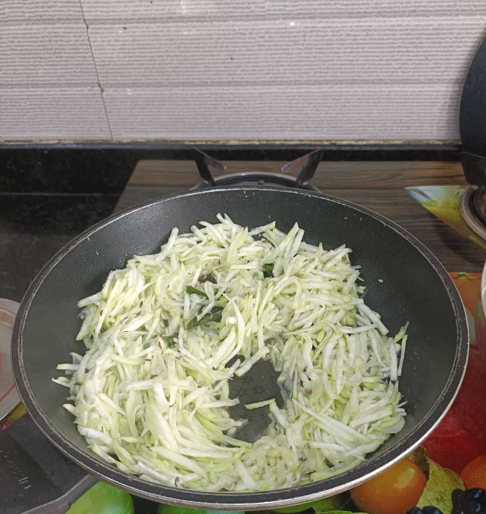 - After 10 minutes you will get a crunchy grated Bottle guard which tastes more delicious than cooked soggy grated Bottle guard.