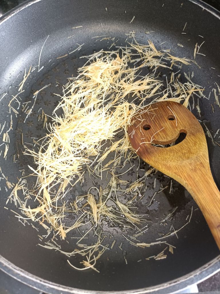 - Gently break vermicelli into small pieces and roast it on a slow flame till it turns golden brown.
