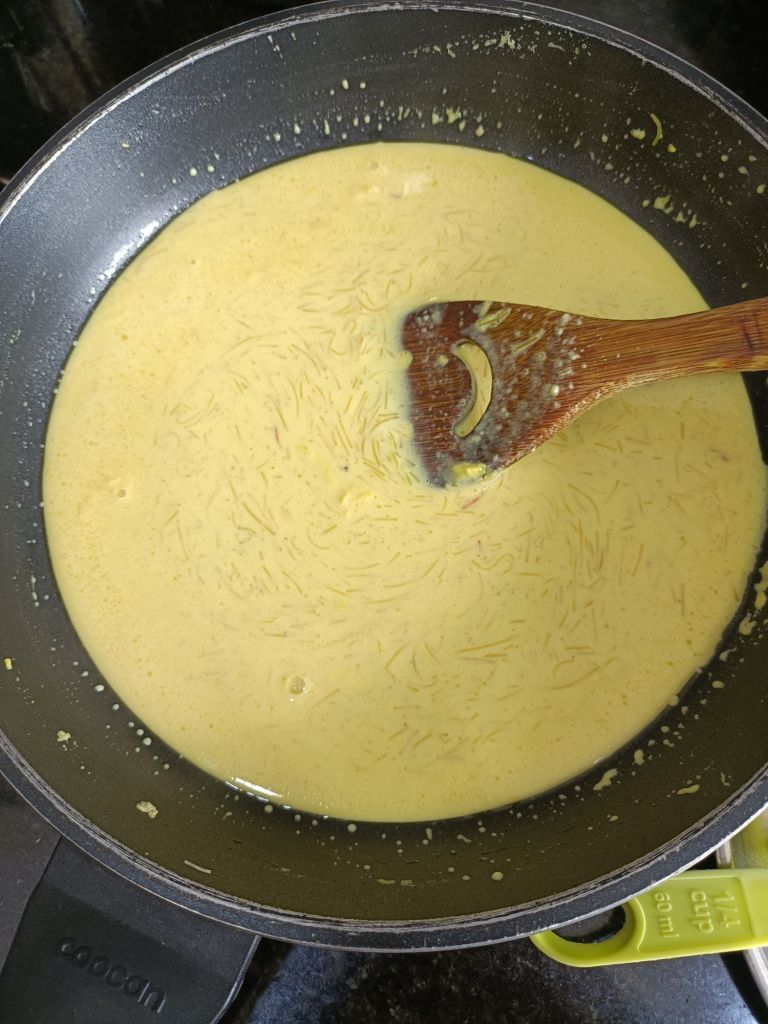 - When the milk starts boiling, add roasted vermicelli and boil milk for 5 minutes.