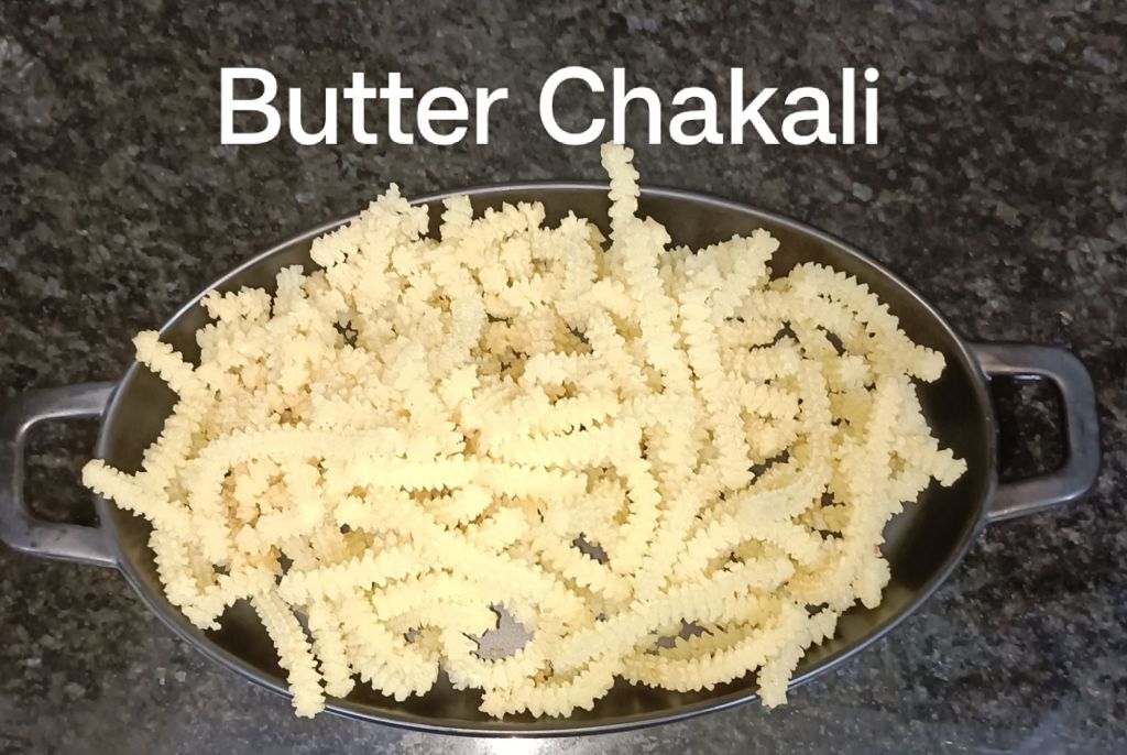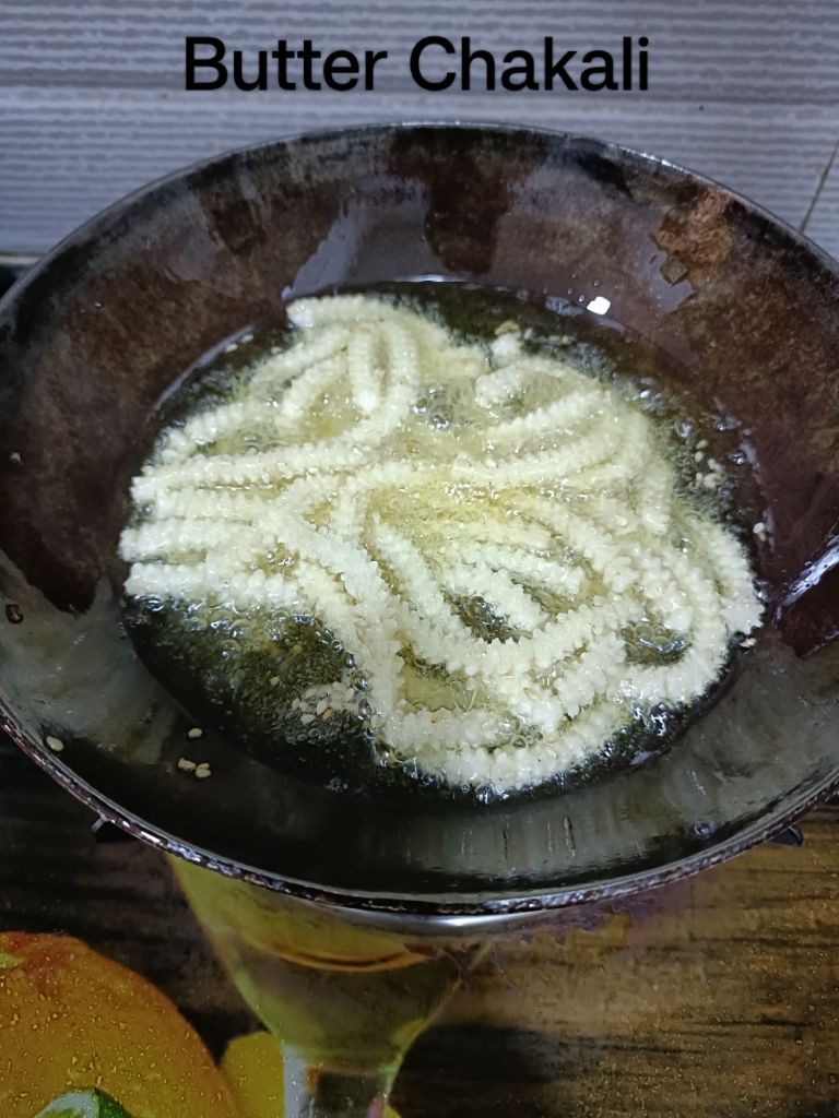 6. Fill the small portion of dough in a chakli press and make a small small spiral from it or press directly in kadhai to get chakli sticks.