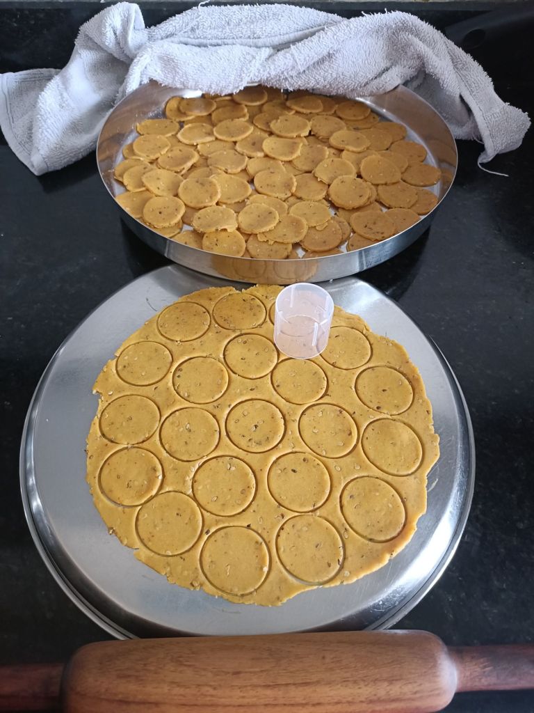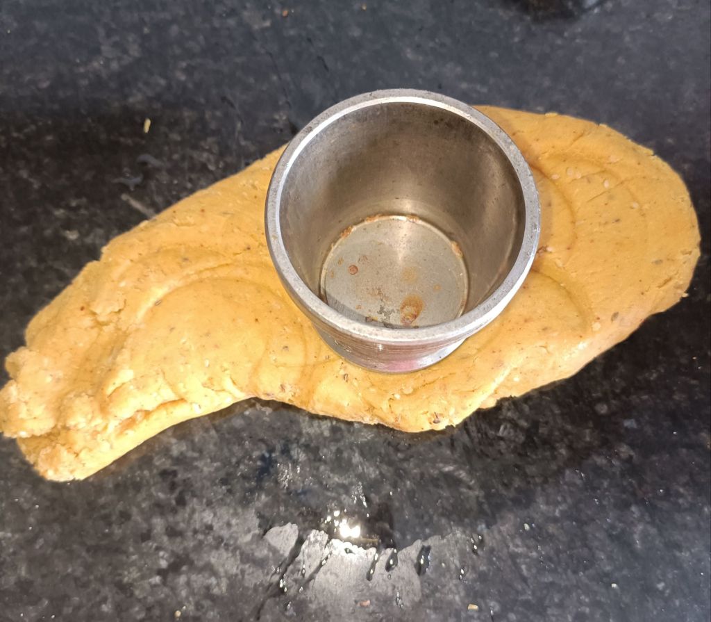 - With the help of a cookie cutter or cap of a bottle cut out small puris.