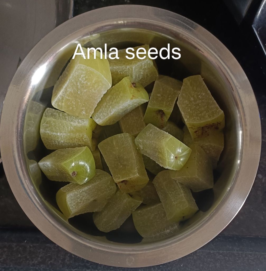 - Pressure cook Amla seeds up to 3 whistles.