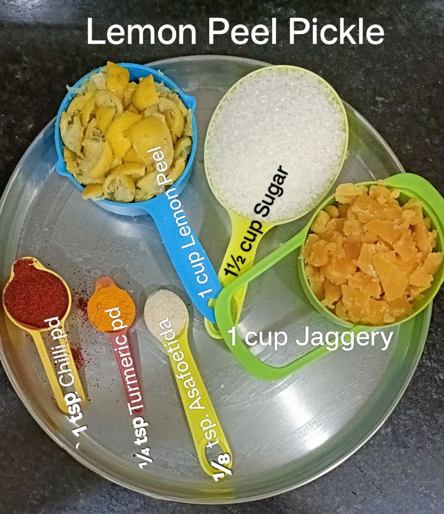 1. After making lemon juice cubes , we had kept lemon peels aside. Let’s  use these lemon peels for making pickle.