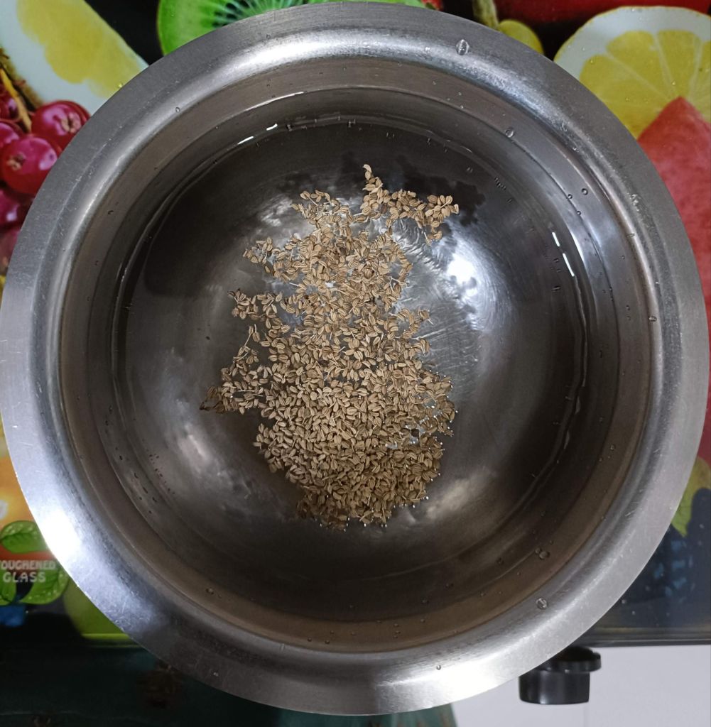 - In a sauce pan add water and Carum Seeds.