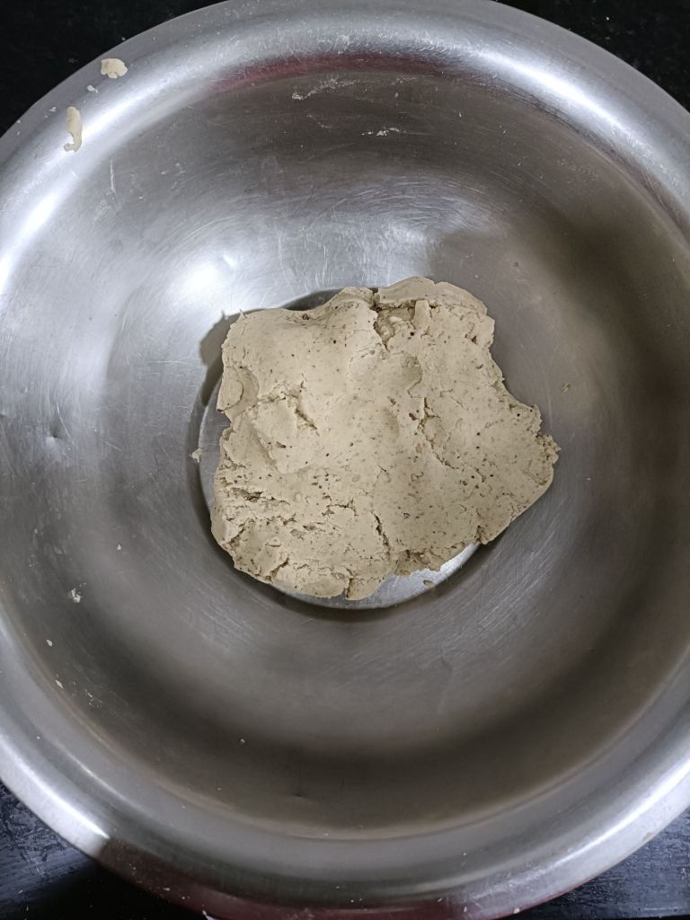 3. Knead the medium thick dough. Keep aside for 10 minutes.