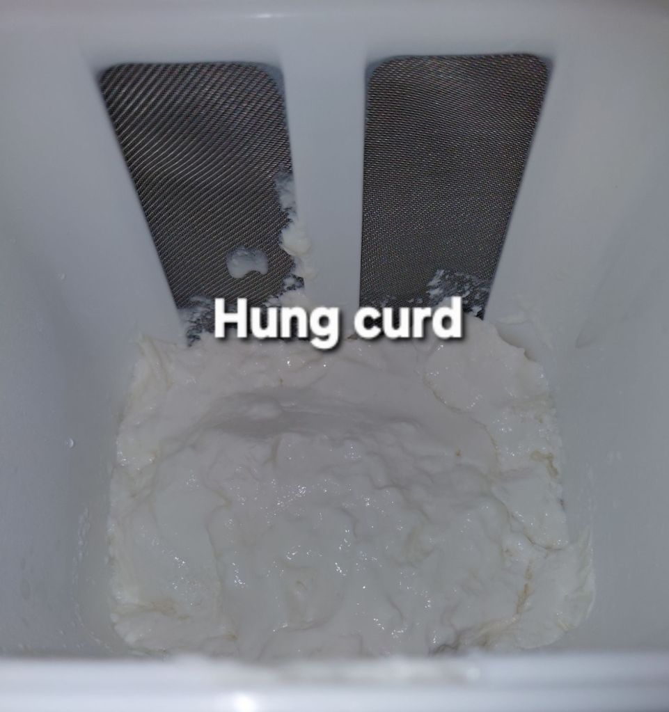 6. After the whey drains out, open the cloth — your thick, creamy hung curd is ready!