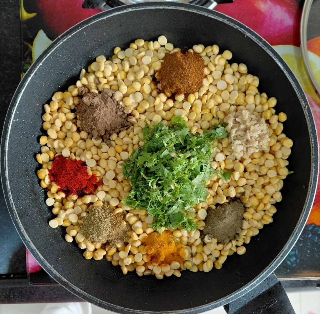 - Switch off the flame and mash all chanadal with masher. Grate cheese cubes and Paneer in it. Mix thoroughly and knead like dough. The chanadalstuffing is ready to make stuff paratha. Divide stuffing into 16 equal parts. Here easy version will be pressure cook chana dal, mash it and add all spices and prepare stuffing batter which knead like dough and divide into equal portions to make paratha.