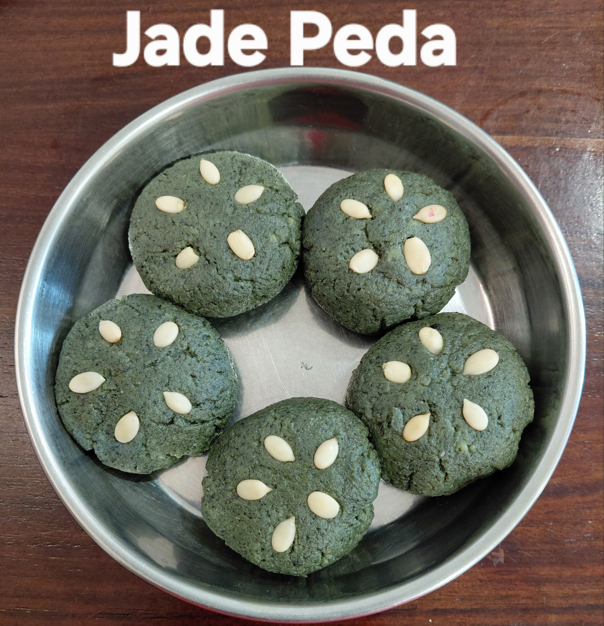 11. Now mix sugar powder and divide the dough into 5 equal parts. Roll them and gently press to give the peda shape. Garnish with watermelon seeds.