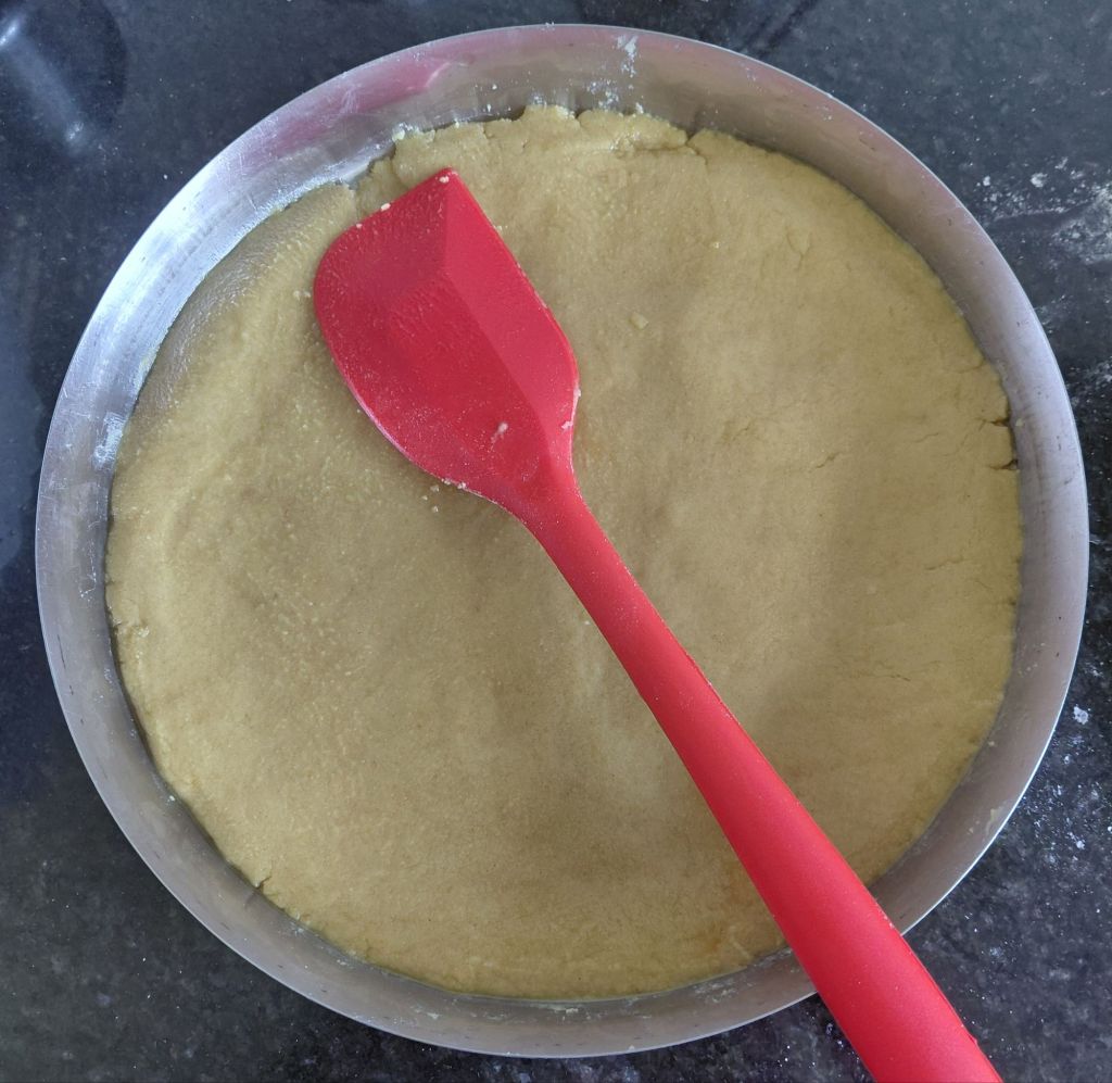 - Finely chop jaggery and keep aside. Grease the 10 inch steel plate and keep aside.