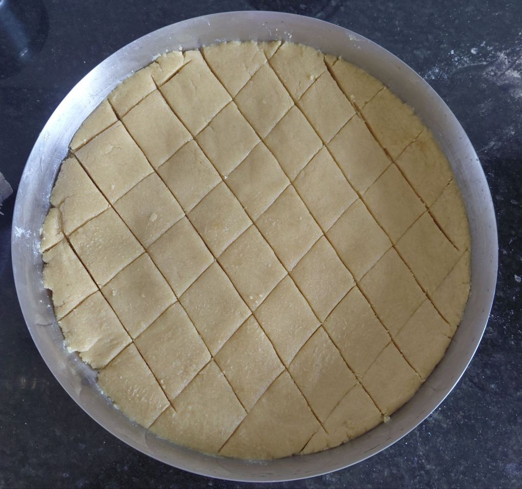 - Cut it into a square or diamond shape. Gud papdi is ready to offer.