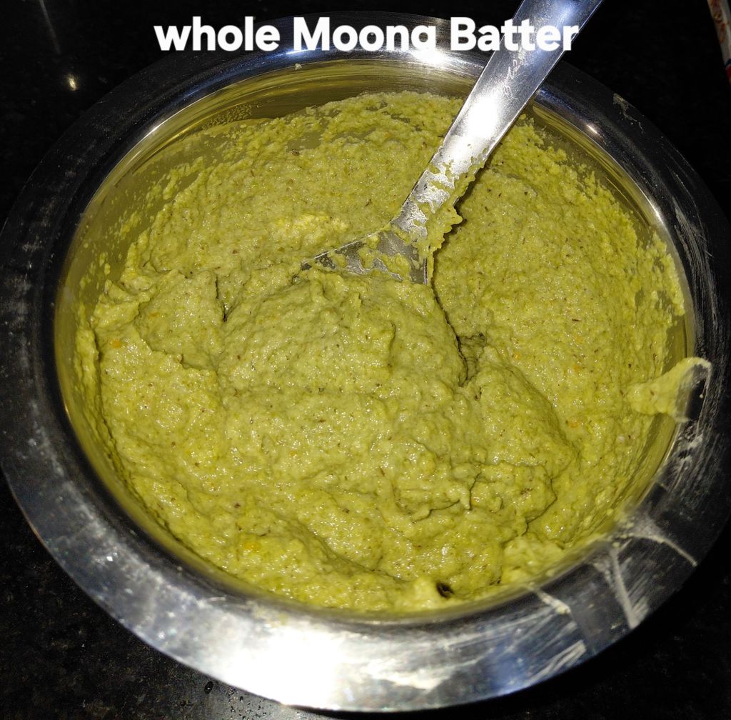 - Wash and grind soaked moong dal, green chillies, ginger and salt without water in the smooth paste. Keep aside for 2 hours.