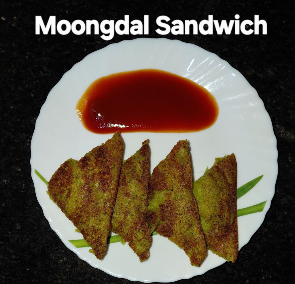 - The moong dal sandwich is ready to serve. Serve with tomato ketchup and green chutney or as you wish but serve with love and smile.