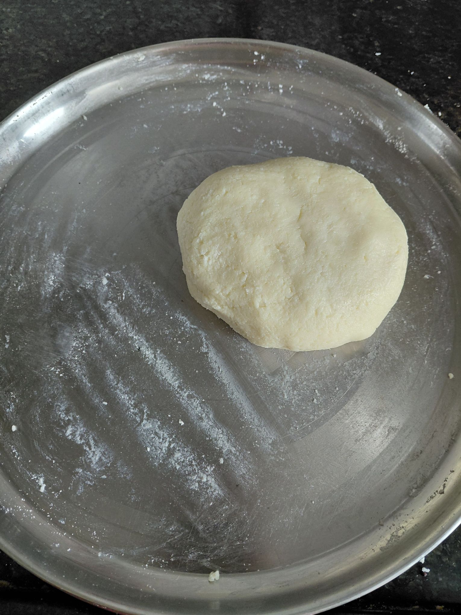 6. Divide dough into equal portions. Each portion roll out into smooth ball and then press gently to give peda shape.