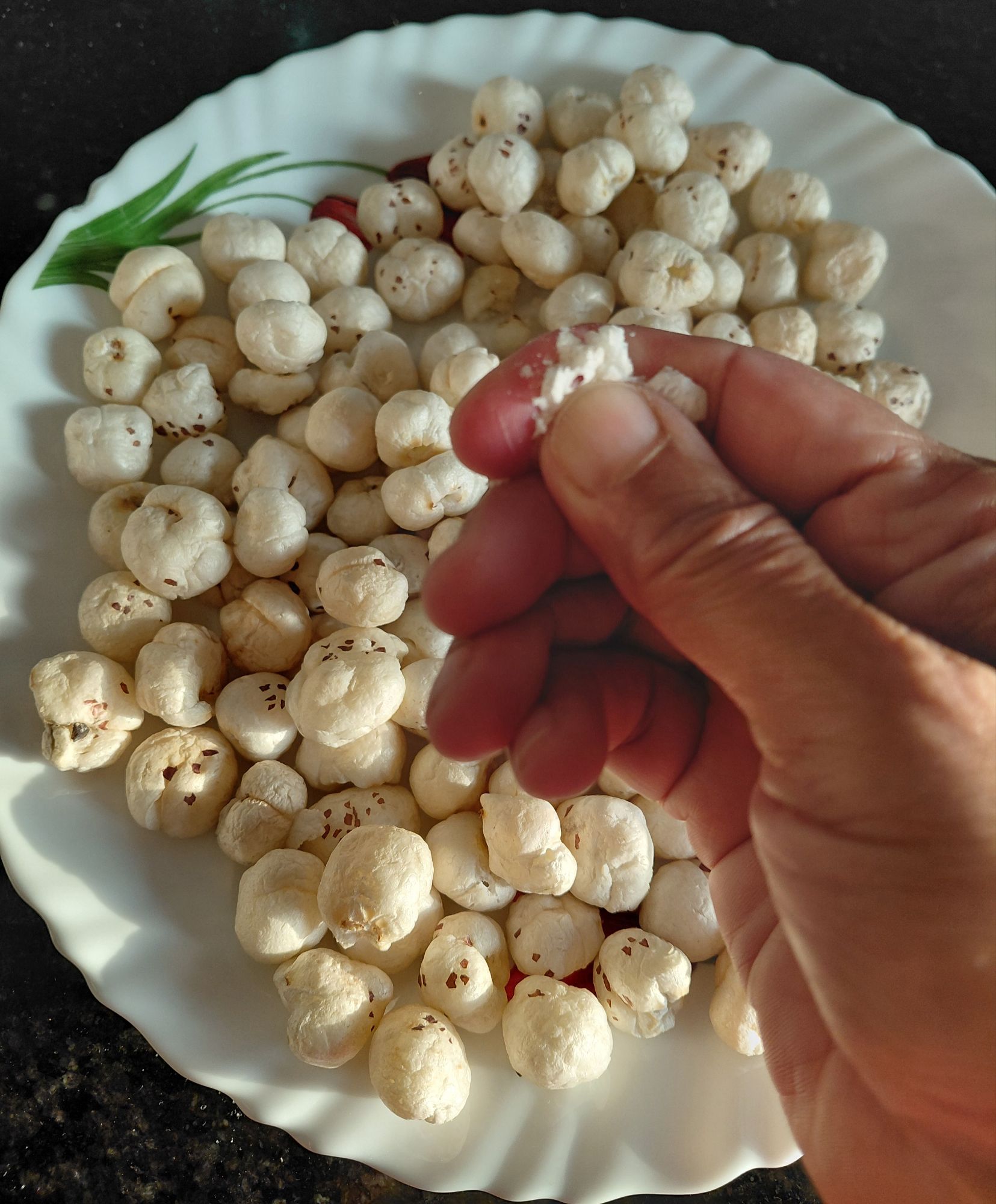 3. Spread Makhana on a ceramic dinner plate and place it in the microwave.