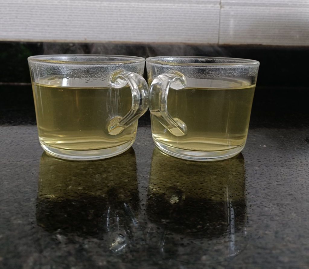 In a saucepan boil water with dry as well as green ingredients for 5 minutes on slow flame. If you have ukalo ready mix powder then use 1 tsp. ready mix powder in 2 cups along with green ingredients like Basil, Lemongrass and Phudina and do not use ginger with ready mix as it contains Ginger powder.