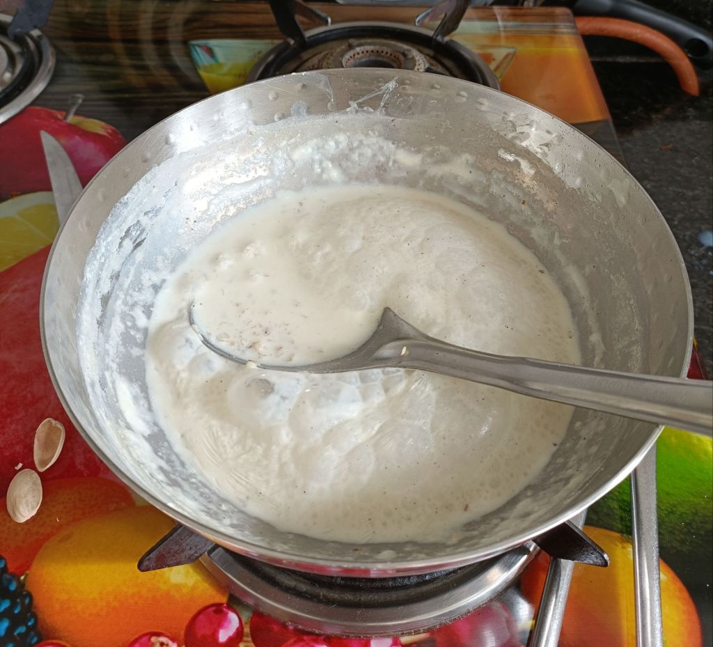 - Heat milk in a thick bottom sauce pan and boil for 5 minutes. Stir continuously.