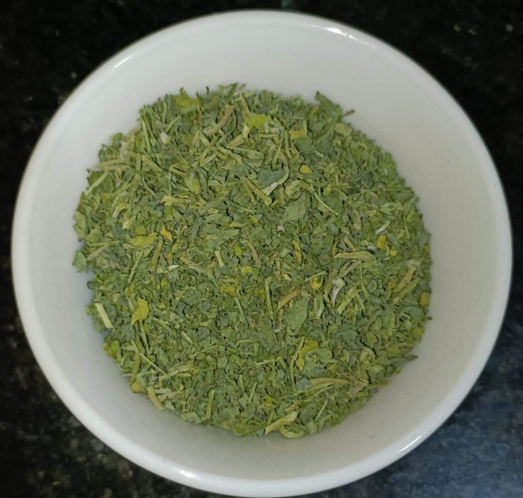 After 15 days Methi leaves dried and the colour of the leaves remains green after drying.