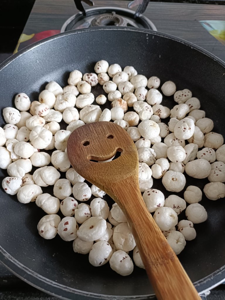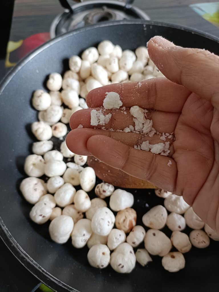 Dry roast makhana on a slow flame. When you break a single makhana with your fingers then it will easily break down. This means makhana are perfectly roasted.