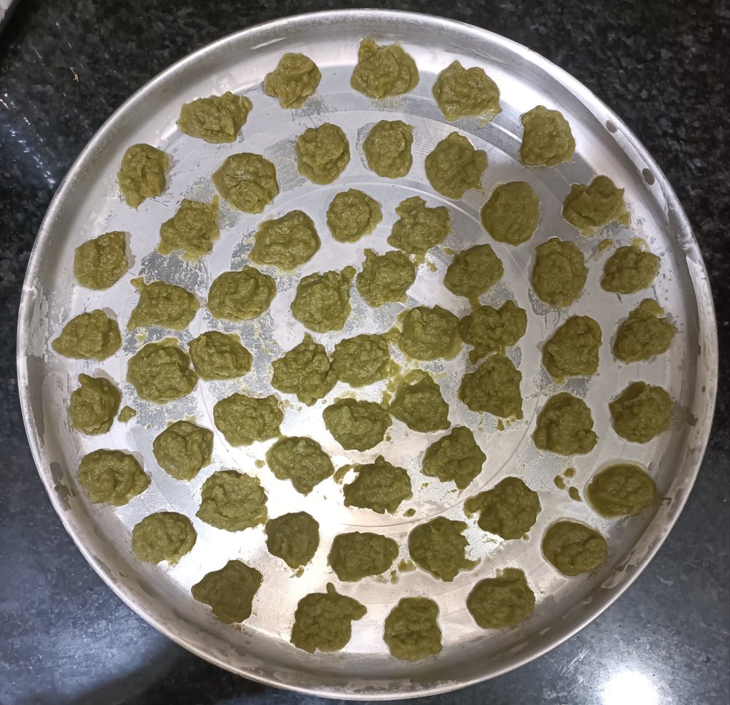 Grease steel plate with oil and drop ½ tsp. paste and arrange in a circular manner and freeze this plate for 8-10 hours.