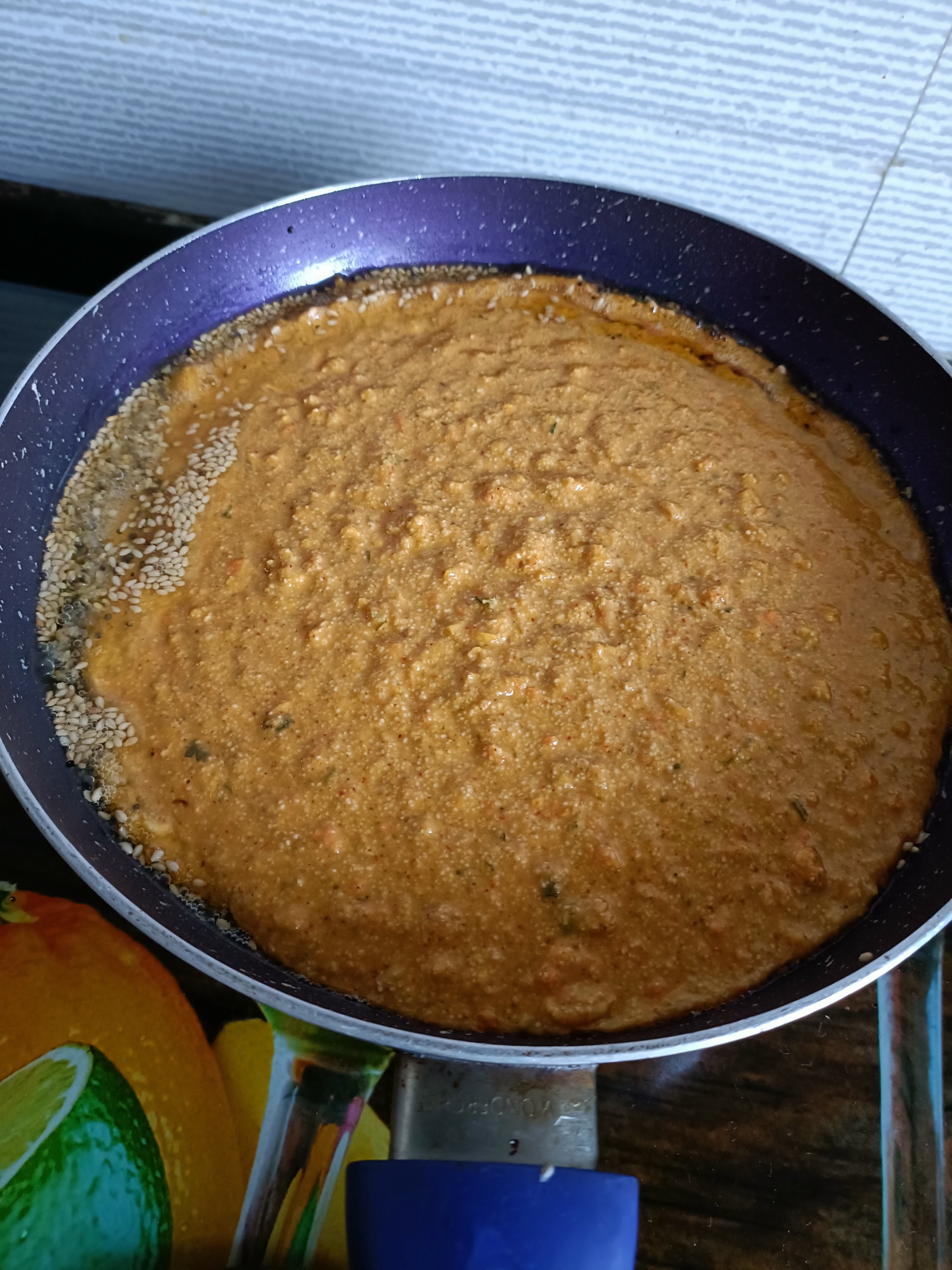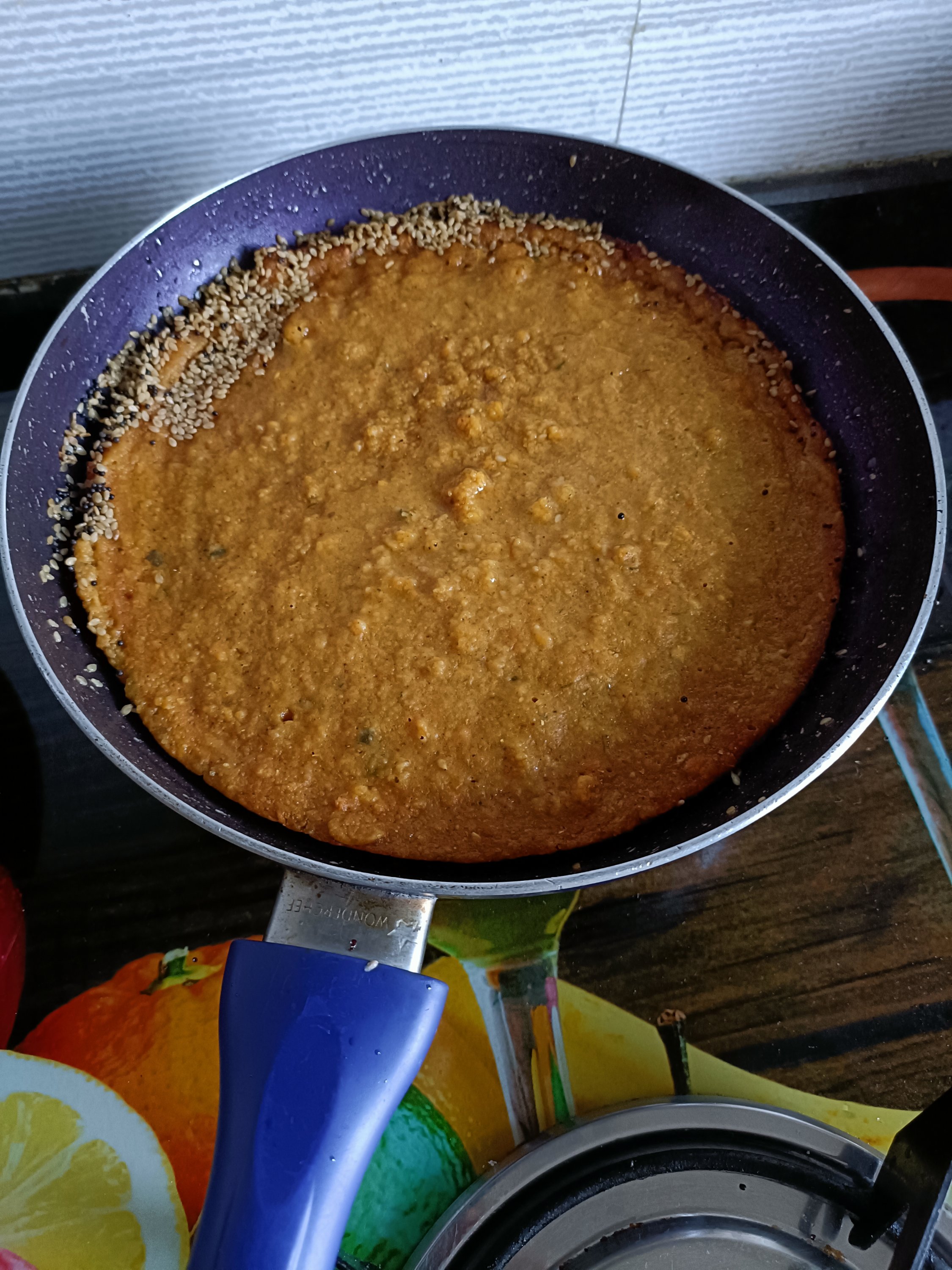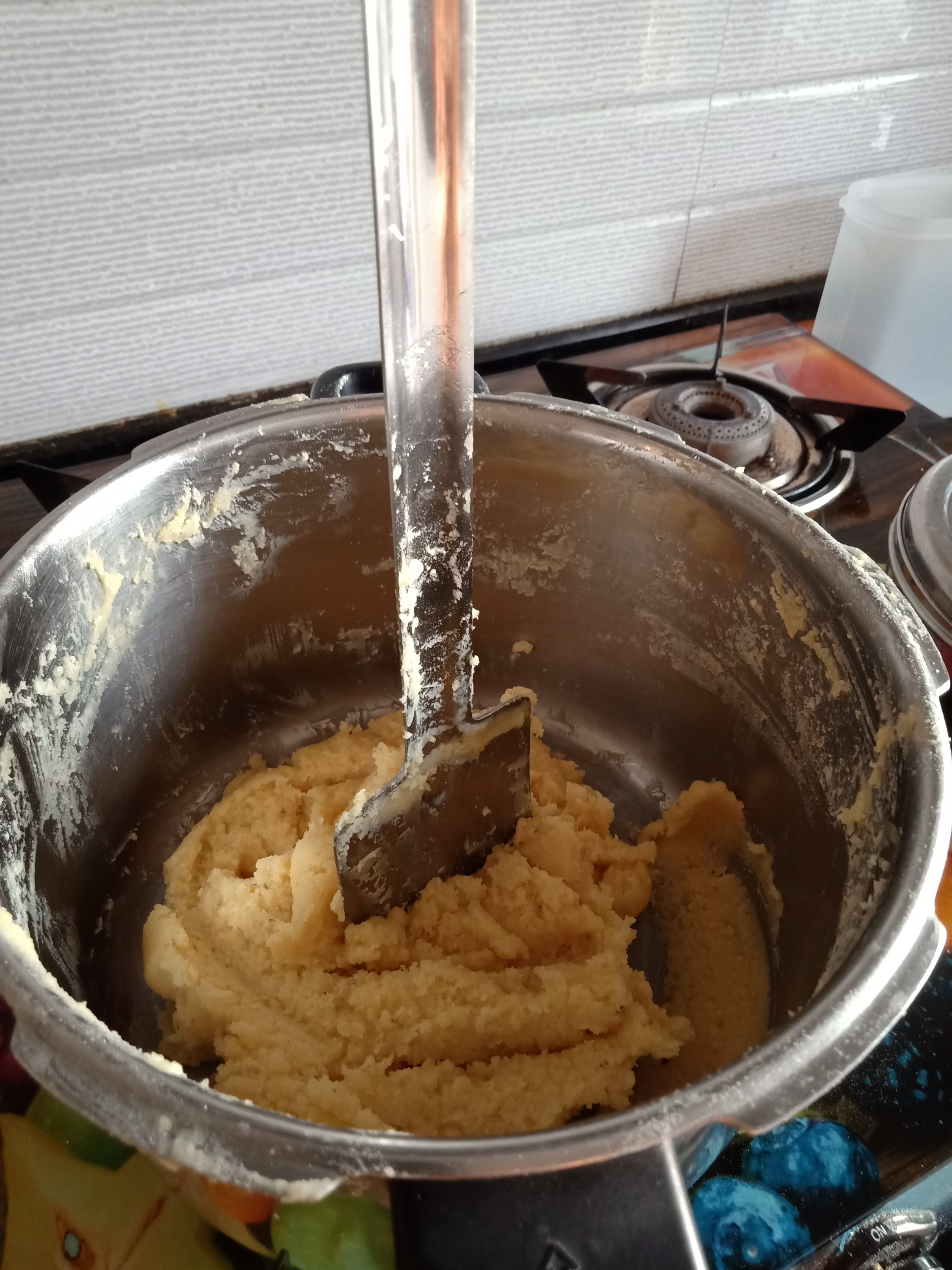 - In a mixing bowl mix both the flours, spices and soda and make a smooth batter with the help of water. Adjust the consistency by adding more water ( see video).