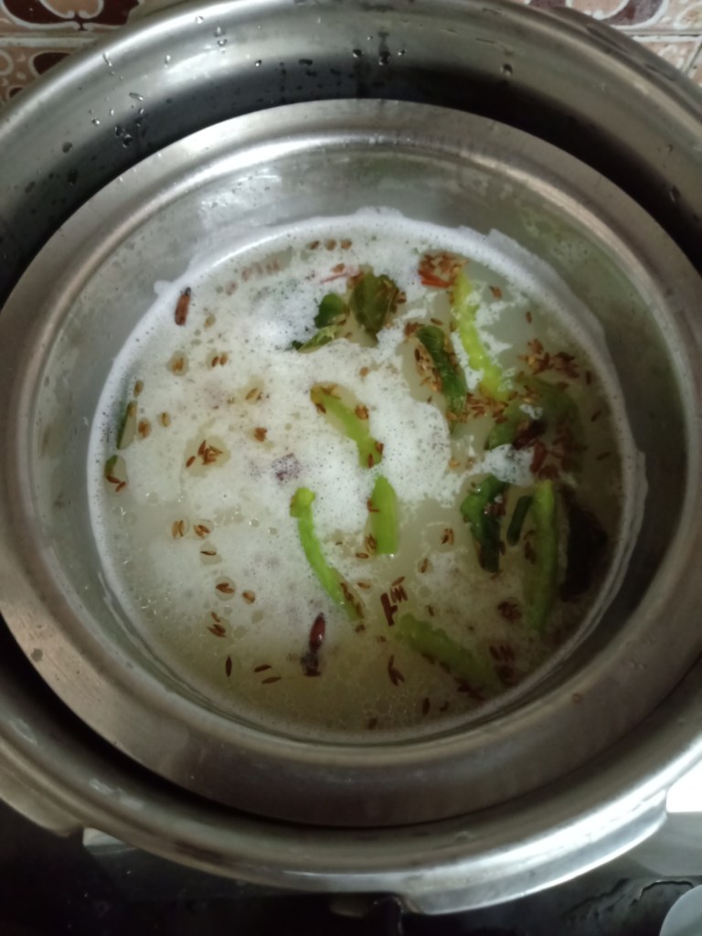 - 3½ cups if khichadi in steel pot in cooker.