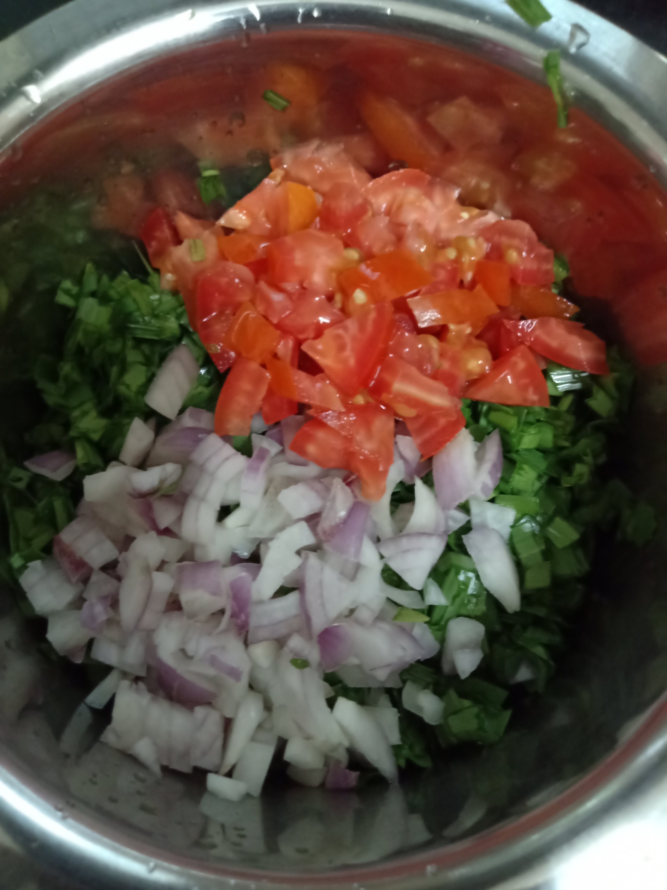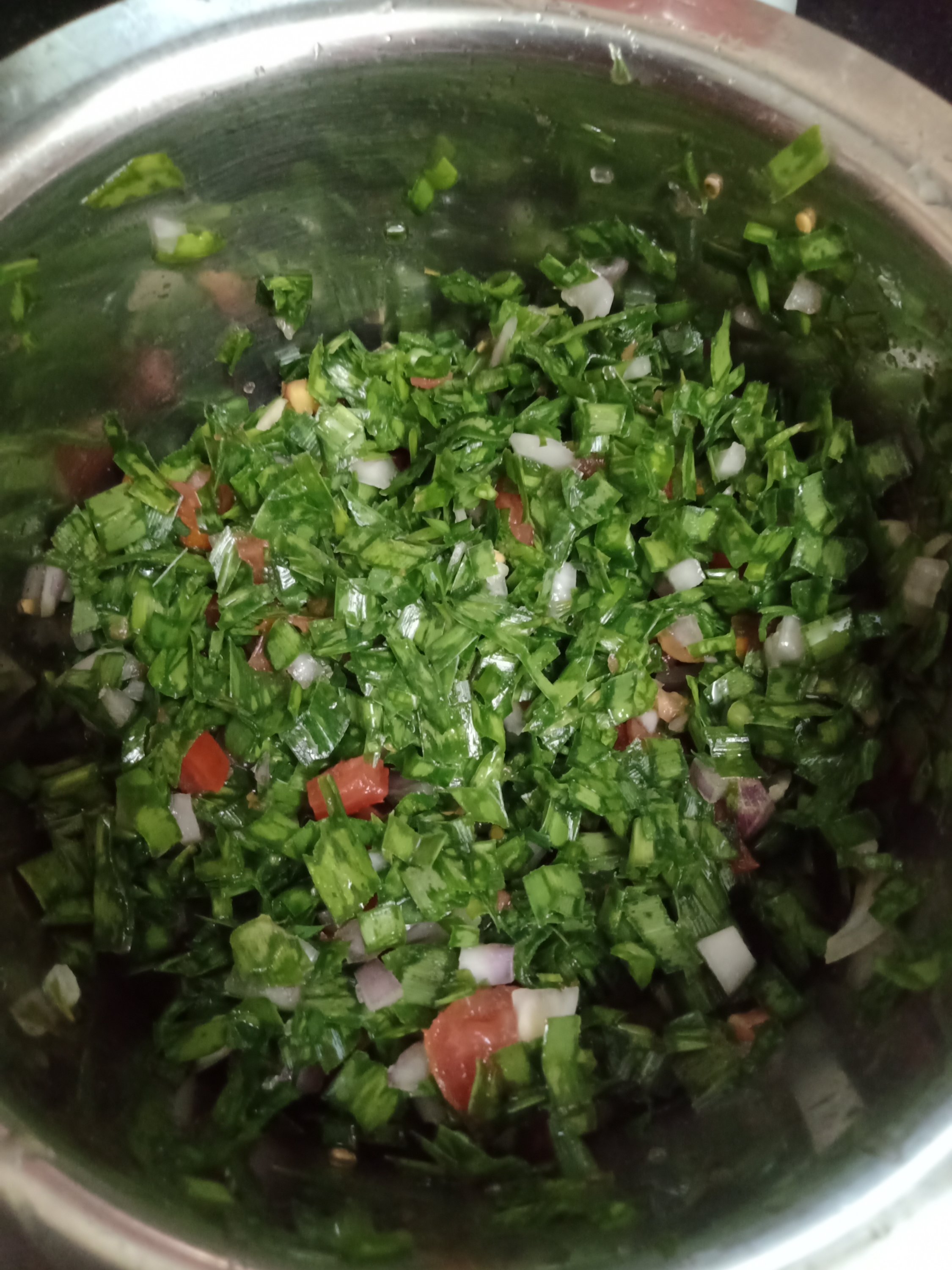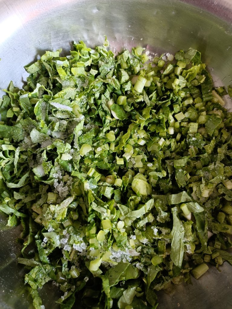 - Mix chopped vegetables with salt and Ginger chili paste.
