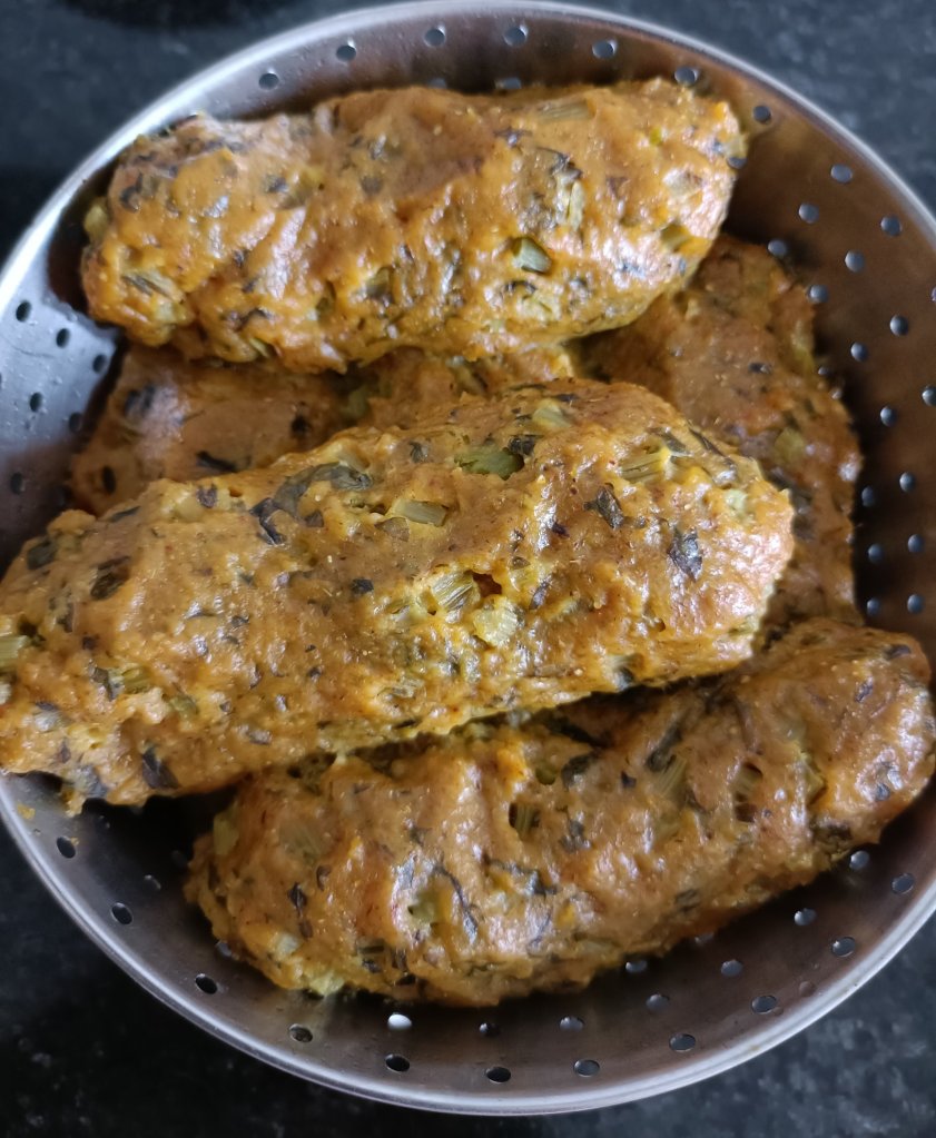 Fill ¾ thali with batter. - Steam dhokla thali for 20 minutes.