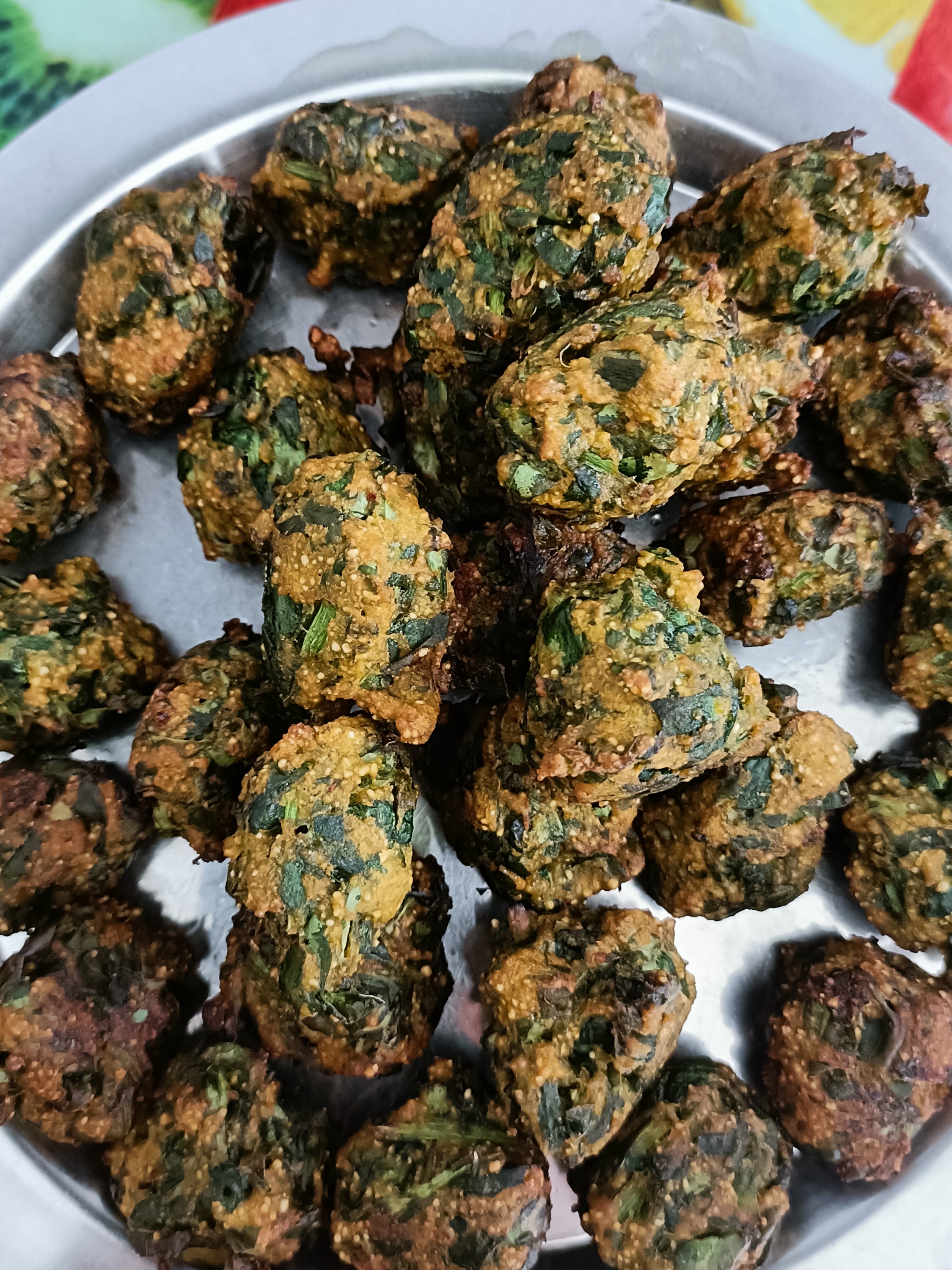 - In marinated spinach mix wheat flour, besan and all spices.