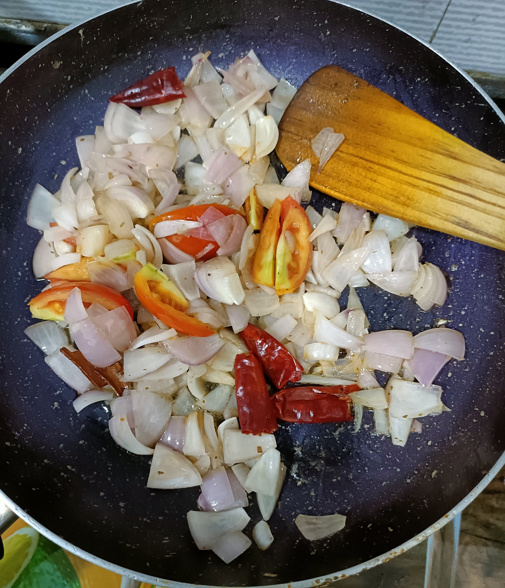 - Saute all cut vegetables on medium flame and stir continuously. Sufficiently saute so it is cooked but crunchy.