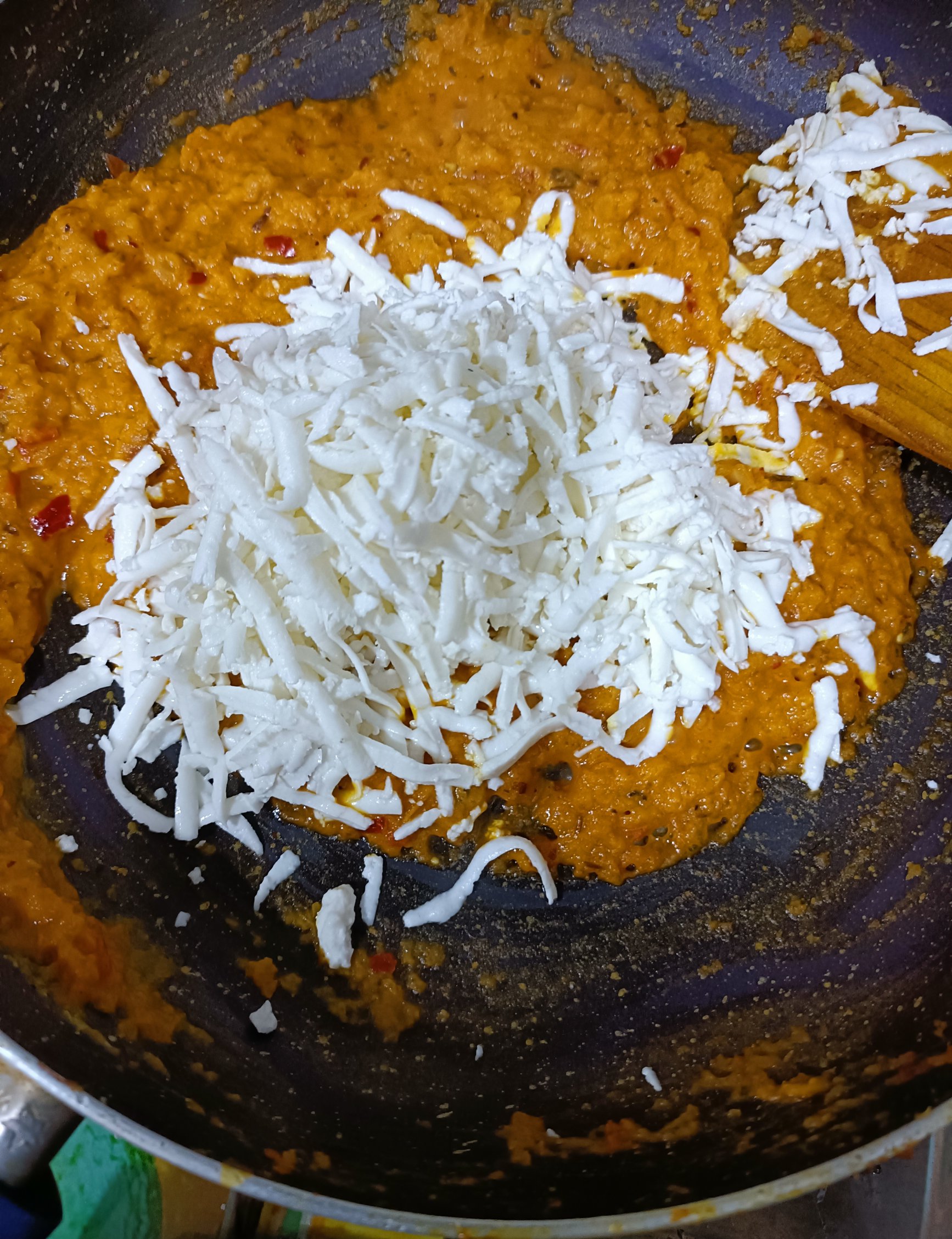 - Fourth layer of Paneer filling and final fifth layer of Cheese over it.